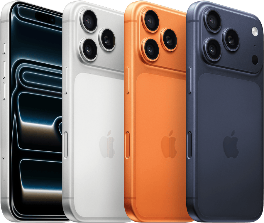 Disclaimers: (1)The display has rounded corners that follow a beautiful curved design, and these corners are within a standard rectangle. When measured as a standard rectangular shape, the screen is 6.27 inches (iPhone 17, iPhone 17 Pro) diagonally. Actual viewable area is less. (2)Compared with the glass back of previous-generation iPhone. (3)Compared with previous-generation iPhone. (4)All battery claims depend on network configuration and many other factors; actual results will vary. Battery has limited recharge cycles and may eventually need to be replaced. Battery life and charge cycles vary by use and settings. (5)Testing conducted by Apple in July 2025 using preproduction iPhone 17 Pro units and software, USB-C Charge Cable with Apple 40W Dynamic Power Adapter with 60W Max (Model A3351) and Apple MagSafe Chargers (1-metre Model A3502 and 2-metre Model A3503) with Apple 30W USB-C Power Adapter (Model A2164) or Apple 40W Dynamic Power Adapter with 60W Max (Model A3351). Fast-charge testing conducted with drained iPhone units. Times measured from the appearance of the Apple logo as the unit started up. Charge time varies with adapter, settings, usage and environmental factors; actual results will vary. (6)Some features may not be available for all countries or all areas. (7)Apple Intelligence is available in beta. Some features may not be available in all regions or languages. (8)Globalstar and its affiliates. (9)iPhone 17, iPhone 17 Pro and iPhone Air can detect a severe car crash and call for help. Requires a mobile network connection or Wi-Fi calling. (10)Wi-Fi 7 available in countries and regions where supported. (11)Data plan required. 5G is available in selected markets and through selected carriers. (12)Use of an eSIM requires a carrier that supports eSIM and a carrier plan. See your carrier for details.