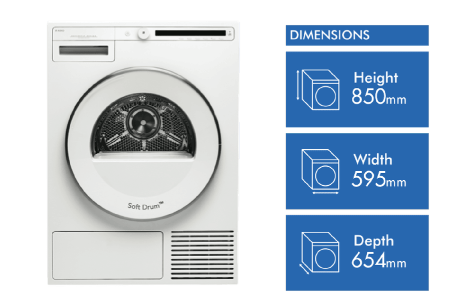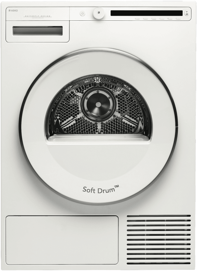 Laundry day can be a breeze with this ASKO 8kg Classic Condenser Dryer. The ASKO T208C is a condenser dryer so there’s no venting required, just plug the dryer into the laundry powerpoint and your favourite pair of jeans will be dry before you know it. This 8kg Classic Condenser Dryer T208C also features ASKO’s unique and gentle Butterfly Drying technology to prevent your clothes from turning into twisted bundles. It does this by drying clothes in a figure 8 motion using two paddles and a one-way tumbling process. The T208C has an 8kg capacity so there’s enough space to dry clothes or bedding for three to four people. With plenty of programs to choose from, including special programs for bedding and for refreshing your clothes, it’ll help take the guesswork out of drying all sorts of items. Part of the ASKO Classic range, this condenser dryer has a discreet yet elegant appearance. It’s easy to use the LCD display, and program names can be displayed in 25 languages so even Nonna will find the perfect program for her washing. For a dryer that is simple to run, has a host of features to care for your garments and backed by high-quality Scandinavian design, look no further than this ASKO 8kg Classic Condenser Dryer in white.