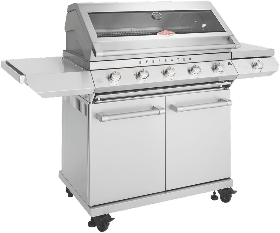 This freestanding BeefEater Signature 7000 Classic 5B BBQ gives you serious outdoor cooking power with its spacious 448000mm total cooking area. Perfect for family gatherings, the stainless steel construction offers durability you can count on season after season. The 304 grade stainless steel finish not only looks great but stands up to the elements, while lockable castors make it easy to position your BBQ exactly where you need it. With dimensions of 1284mm height, 1758mm width and 685mm depth, this substantial 132kg BBQ comes with a sturdy trolley for convenient storage and mobility. Backed by a 1-year manufacturer’s warranty, the BMG7652SA is built to deliver reliable outdoor cooking performance.