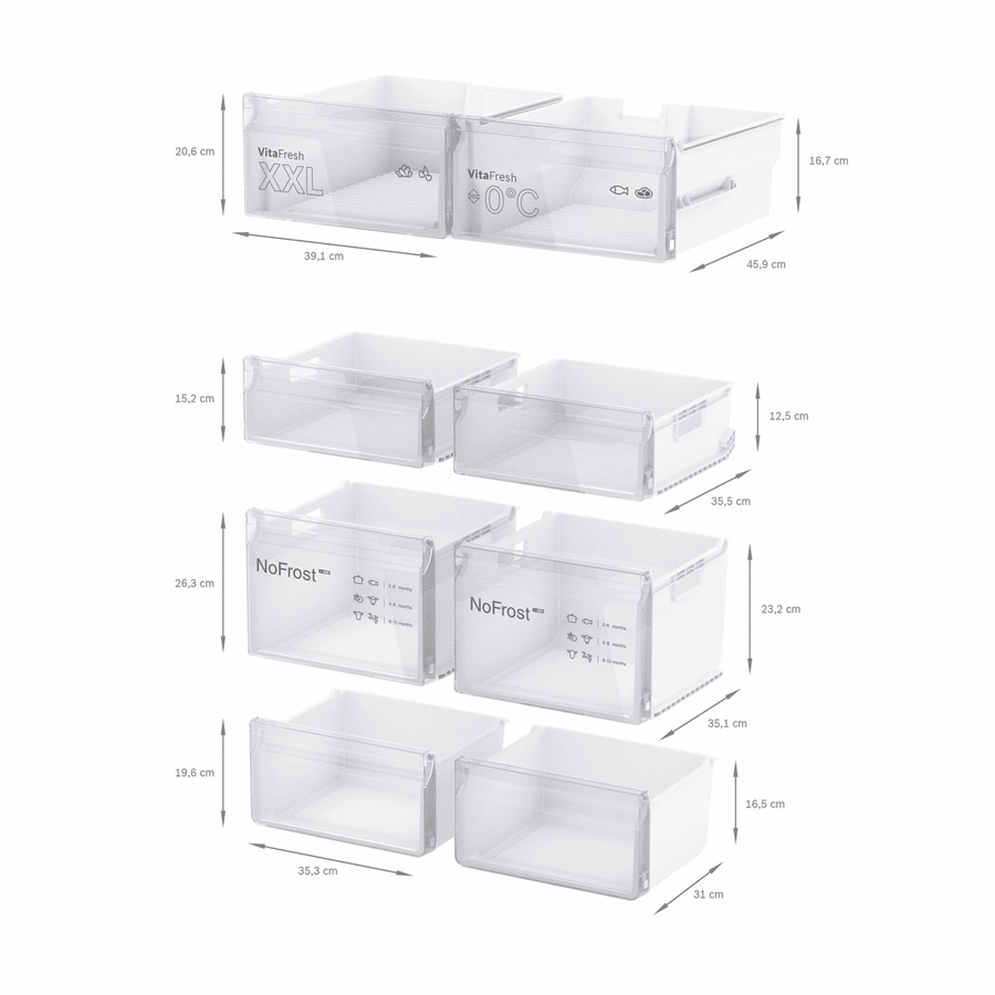 - VitaFresh XXL drawers, multi airflow, LED lighting