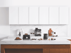 Breville’s the Barista Express Impress Black Truffle BES876BTR4IAN1 does just as its name says. Create third wave specialty coffee at home from bean to espresso in less than a minute once heated up, thanks the best of the Barista Express with the Impress Puck System allowing mess free, evenly packed doses measured and tamped to perfection. Achieve the perfect dose and a precise tamp while reducing the grinds on bench tops, ensuring a perfect espresso, latte or flat white with nine bars of pressure and 130 degrees of steam in the milk wand creating silky micro foam on top.