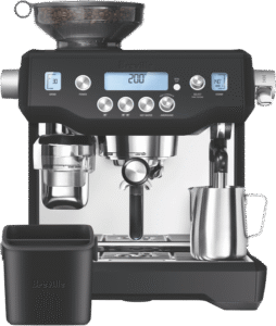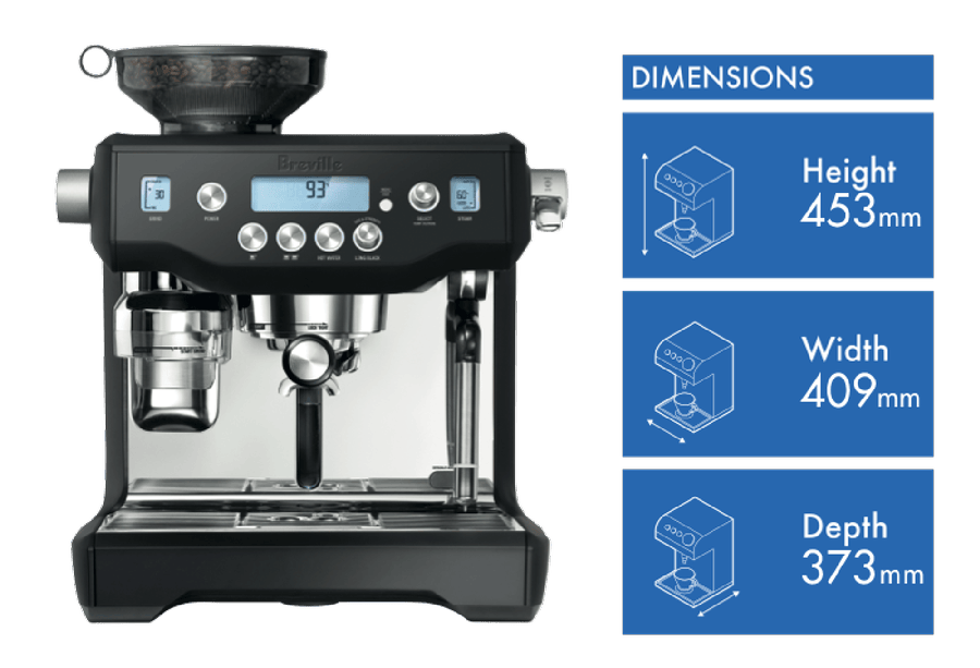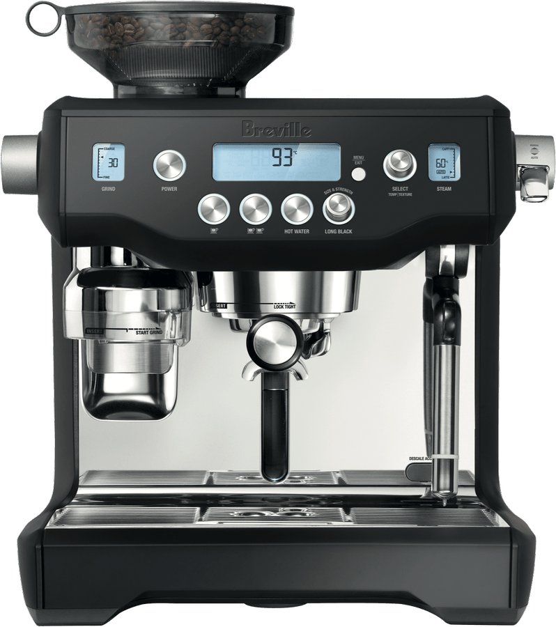 The Breville Oracle Coffee Machine in Black Truffle is a masterful manual espresso machine that will take your home brewing to barista-quality levels. With a triple heating system providing optimal temperature control, fast heat-up, and simultaneous espresso extraction and milk texturing, you can craft café-worthy beverages with ease. The integrated conical burr grinder with dose control delivers the perfect amount of freshly ground beans every time. With a striking design and intuitive controls, this all-in-one machine makes it simple to pull rich, full-bodied espresso shots and silky microfoam milk textures. Whether you prefer short blacks or long lattes, the Oracle Coffee Machine brings the café experience home. Crafted for coffee aficionados who want total bean-to-cup control, this machine takes the guesswork out of brewing. The manufacturer’s part number for this product is BES980BTR2JAN1. Discover how the Oracle can help you make barista-quality coffee drinks with ease.