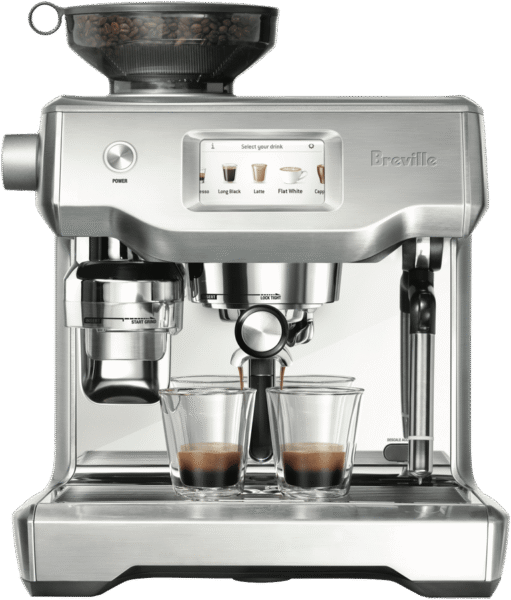 Step into the world of cafe-quality coffee at home with the Breville The Oracle Coffee Machine. This fully automatic coffee machine takes the guesswork out of brewing with its innovative features. The dual stainless steel boilers provide optimum temperature control, while the Over Pressure Valve limits extraction pressure. The hands-free grinding, tamping and milk texturing ensures consistency and convenience. The intuitive touchscreen and automatic features like shot clock and auto start also make the Oracle a pleasure to use. Crafted from stainless steel with a sleek design, this coffee machine will suit any modern kitchen. The Oracle comes equipped with everything needed to kickstart your barista journey. From the 58mm stainless steel portafilter to single and double wall filter baskets, tamper and 480ml milk jug, you’ll have professional-grade tools on hand. With a 2.5 litre water tank capacity and easy to clean parts, this coffee machine takes care of itself. The Oracle is backed by a 2 year manufacturer’s warranty for peace of mind. The manufacturer’s part number for this product is BES980BSS. Bring cafe-style coffee into your home with the Oracle.