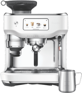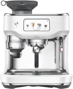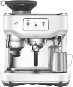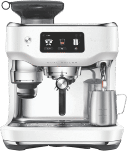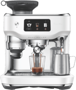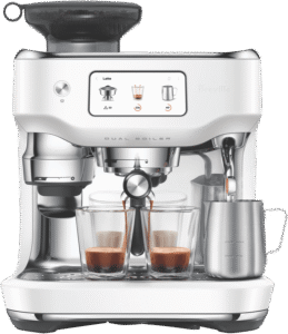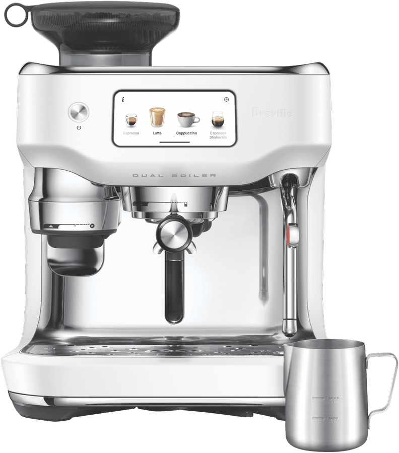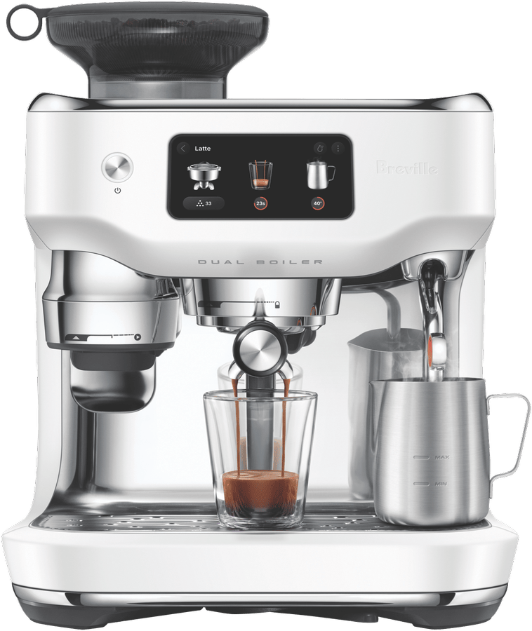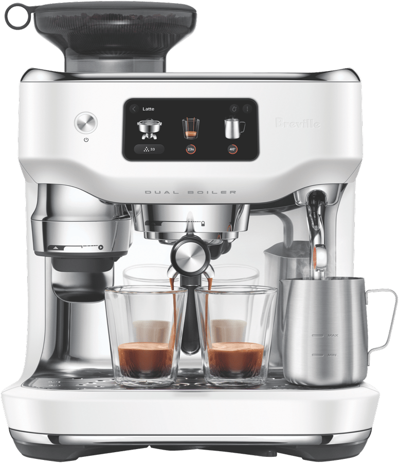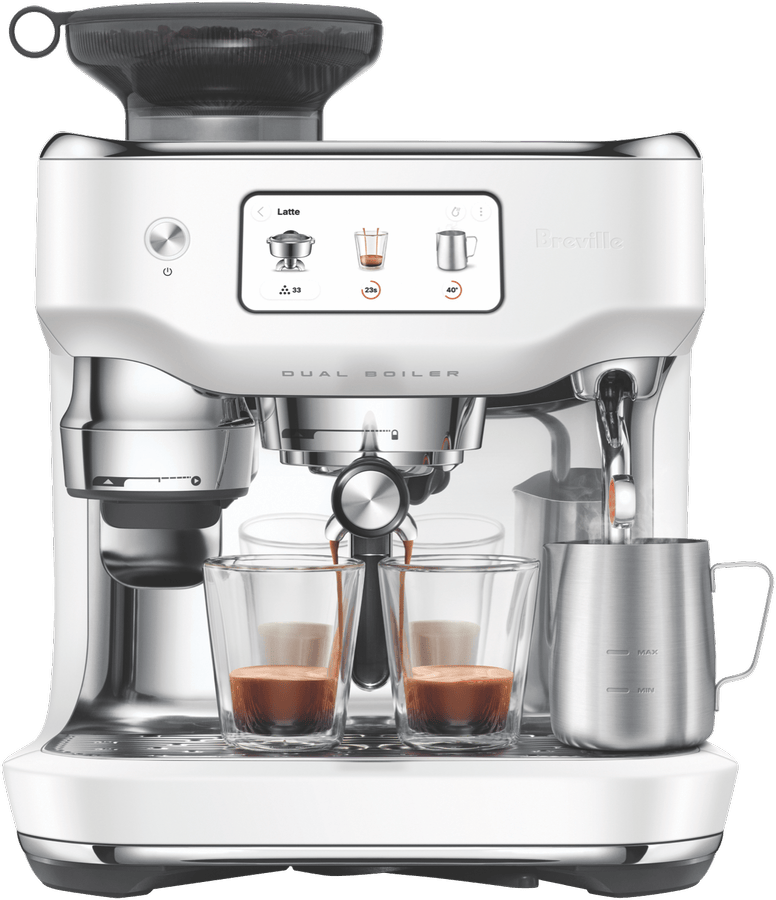 Make barista-quality coffee at home with The Oracle Dual Boiler Coffee Machine in elegant Sea Salt. This manual coffee machine features a powerful 19 bar pump and dual boiler system that lets you extract espresso while steaming milk simultaneously. The 5.7-inch touchscreen gives you access to 15 preset coffee recipes and 8 customisable drinks, while the built-in grinder with 45 settings ensures perfect grounds every time. For milk lovers, the AutoMilQ system creates hands-free microfoam with settings for dairy, almond, oat, and soy milk. With a generous 2.3L water tank and 340g bean hopper, you’ll have plenty of capacity for entertaining. Comes with a 2-year warranty. Model BES995SST4IAN1.