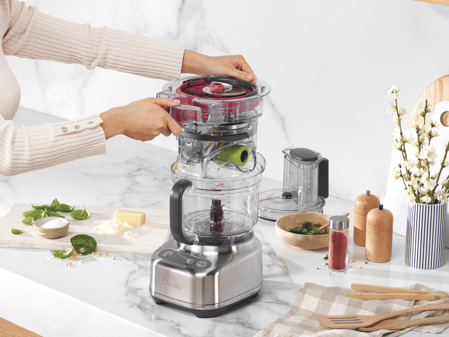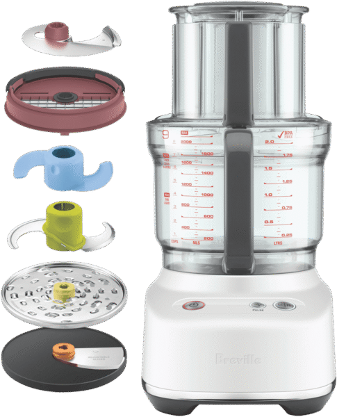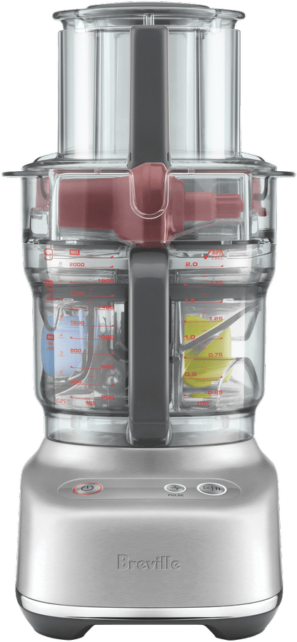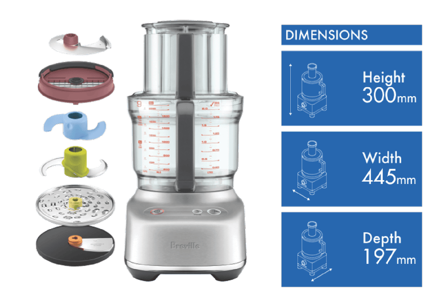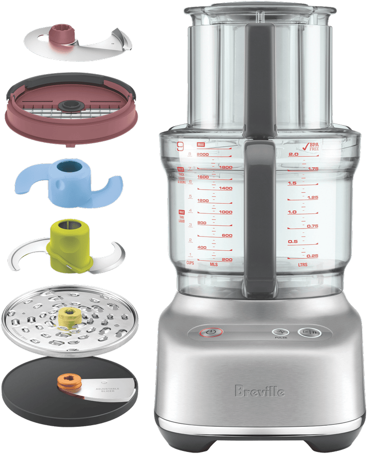 Revolutionize your kitchen prep with the Breville The Paradice 9 Brushed Stainless Steel Food Processor. This versatile kitchen appliance features a 605 watt brushless induction motor and 9 cup BPA-free bowl to quickly and easily slice, dice, shred, knead and puree ingredients for all your favorite recipes. The wide 120mm feed chute allows you to process larger items with less pre-chopping. It includes multiple blades and discs like the reversible shredder, adjustable slicer, dough blade and S-blade to accommodate all your processing needs. With the integrated storage caddy, colour coded accessories and dishwasher safe parts, using and storing this food processor is a breeze. Prepare quick homemade meals and snacks for the whole family with the multifunctional Breville The Paradice 9. The manufacturer’s part number for this product is BFP638BSS2IAN1. Discover how convenient food prep can be with the Breville Paradice 9 Food Processor.