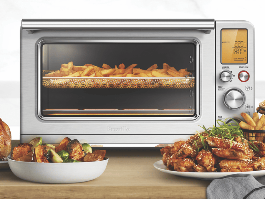 Imagine a kitchen where you can air fry, bake, roast, and more with just one appliance. The Breville The Smart Oven XL Air Fryer (BOV905BSS) does it all in a sleek, countertop-friendly design. Its generous 28 litre capacity fits up to 9 slices of bread, 1kg of chips, or even a 6kg turkey. The Element iQ System directs power for precise cooking across 15 modes, from air frying to slow cooking. The LCD display and simple controls make it a breeze to use. Plus, it comes with all the accessories you need, including a pizza pan, wire racks, roasting pan, and air fry basket. Backed by a 2 year warranty, the BOV905BSS is your versatile kitchen companion.