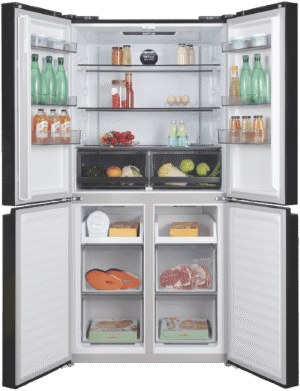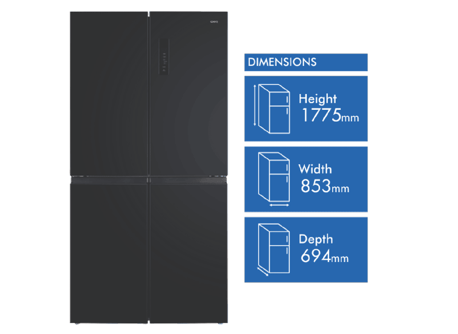 Step into the modern life with the stylish CHiQ 503L French Door Refrigerator. This dual-door fridge is designed to suit your family’s storage needs while adding a touch of sophistication to your kitchen. With a total capacity of 503 liters, this refrigerator provides ample space to stock up on weekly groceries and leftovers. The configuration includes a large 317-liter fridge compartment and a 186-liter freezer section. The fridge area has adjustable shelves, door bins, and a crisper drawer to keep fruits and veggies fresh. The freezer offers plenty of room for frozen foods, ice cubes, and more.CHiQ has engineered this refrigerator for convenience and efficiency. It has an energy rating of 4 stars to help save on electricity bills. The multi-air flow system and inverter compressor work together to maintain optimal temperatures while minimizing energy use. Interior LED lighting and sleek flat doors add a modern aesthetic. Additional handy features include a user-friendly LED control panel, a reversible door option, and frost-free technology to prevent icy buildup. With robust construction and a 3-year warranty, this CHiQ refrigerator aims to provide lasting service with style. Simplify meal prep and grocery shopping for your household with the ample 503-liter storage capacity of the CHiQ French Door Fridge. The manufacturer’s part number for this product is CCD503NB. Make your kitchen complete with this well-designed appliance.