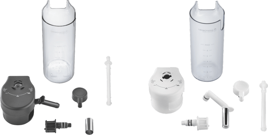 - LatteCrema Hot and Cool jugs with easy clean spout disassembly