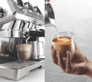 - Integrated grinder and milk frother for café drinks