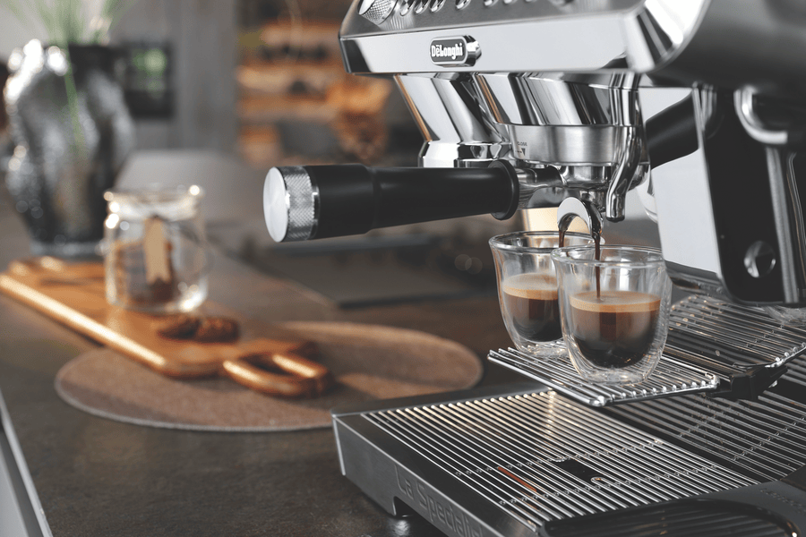 - Manual coffee machine with stainless steel build