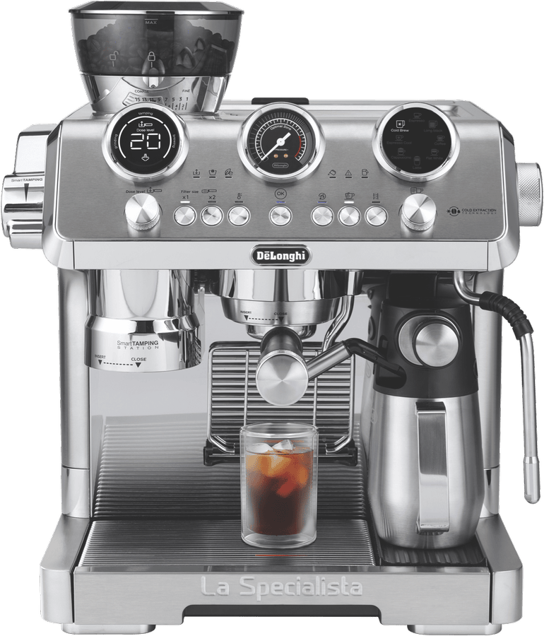 Bring barista-quality brews home with the DeLonghi La Specialista Maestro 2.0 Manual Coffee Machine. This sleek metal marvel packs a 19 bar pump and advanced Thermoblock heating for consistently delicious results. The generous 2.5L water tank and 15 grind settings give you plenty of options to craft your perfect cup. Whether you’re craving a classic espresso, a refreshing cold brew, or a creamy cappuccino, the 8 pre-set recipes have you covered. Plus, the dedicated hot water outlet lets you enjoy your favorite teas too. With its smart tamping station and innovative Cold Extraction Technology, the EC9885M makes it easy to be your own at-home barista. Measuring 465mm (H) x 419mm (W) x 368mm (D) and weighing 16kg.