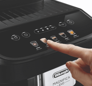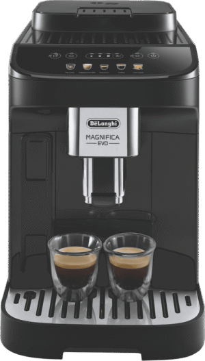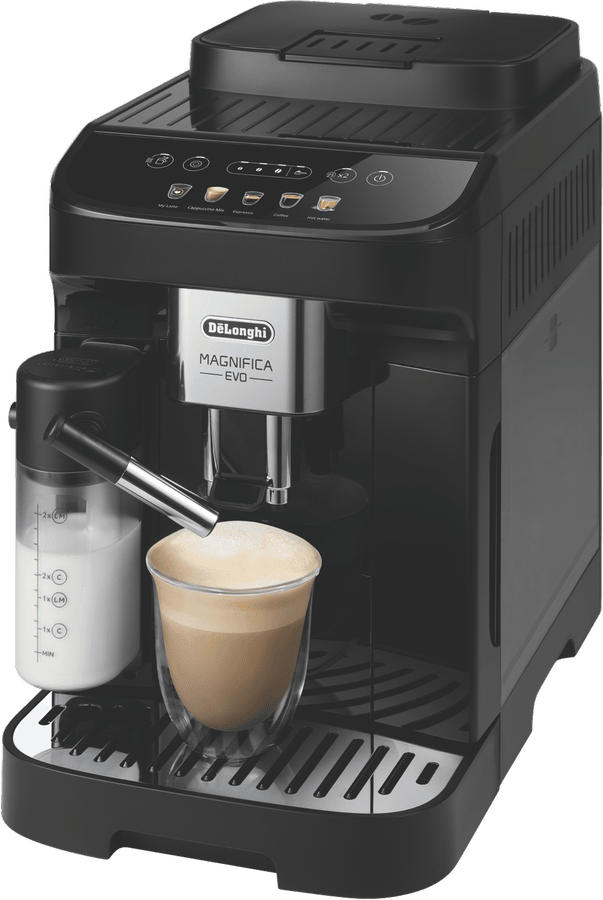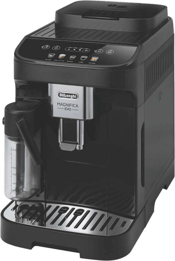 Step into the world of barista-style coffee drinks with the DeLonghi Magnifica Evo Fully Automatic Coffee Machine. This sleek automatic coffee machine brews café-quality espresso, long blacks, lattes and cappuccinos at the touch of a button. Equipped with a conical burr grinder and 15 bar pump pressure, it grinds beans fresh for each cup and extracts maximum flavor. With a 1.8L water tank capacity and 250g bean container, you can brew cup after cup without refilling. Adjust the grind settings to suit your preferred roast. Choose from 13 grind settings for optimal extraction. The built-in milk frother lets you customize your coffee by creating silky smooth froth to top your drinks. Savor coffeehouse beverages from the comfort of home. This DeLonghi coffee machine features a compact, space-saving design to suit kitchens and office spaces. It has a stylish silver and black finish made from painted plastic. Soft touch buttons provide convenient control over all functions. Brew your favorite coffee drinks at your preferred temperature with the LatteCrema system. This DeLonghi Magnifica Evo coffee machine’s versatility supports single or double shots. It caters to cups up to 140mm tall. Become your own barista and craft cafe-quality coffee with the Magnifica Evo automatic coffee machine from DeLonghi. The manufacturer’s part number for this product is ECAM29062B. Start your mornings right with delicious espresso from this automatic coffee maker.