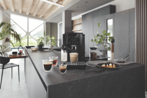 - Intuitive soft touch panel with one touch coffee recipes