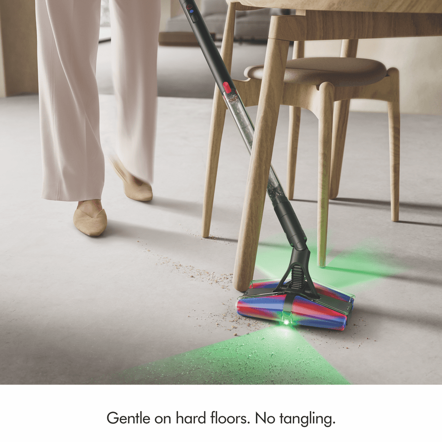The Dyson PencilVac Fluffycones Cordless Vacuum 492714-01 has the revolutionary Fluffycones cleaner head with four conical brush bars to lift and strip hair from surfaces, so it can be easily sucked up with no tangling. Cones clean right to the edge where other shapes can’t. The Pencil Vac illuminates microscopic dust both forwards and backwards on hard floors in all directions so nothing is missed. With a 38mm handle that fits into the hand, the new slim format precisely controls a cleaner head that spins on the spot, making it easier to clean all around home. Up to 30 minutes of fade-free suction(1) is available with the advanced and swappable four-cell lithium-ion battery. It captures 99.99% of microscopic particles(2) with a fully sealed filtration system capturing dust and allergens as small as 0.3 microns(2). Dyson’s new bin emptying system reduces dust clouds by pushing compressed dust deep into the bin for hygienic emptying. The PencilVac Fluffycones connects to the MyDyson app for additional settings and maintenance guidance. Disclaimers: (1) Applies in Eco mode. Actual run time will vary based on power mode, floor type and attachments used. (2) In boost mode tested to ASTM F1977 externally at SGS America in 2024.