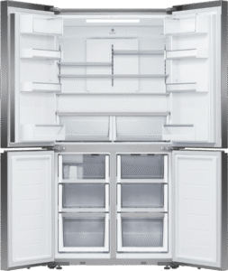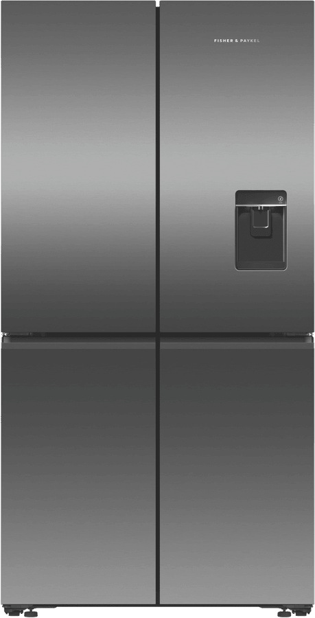 Step up to a more spacious way of refrigeration with the Fisher & Paykel 538 litre Quad Door French Door Refrigerator in classic Black stainless steel. Boasting a generous 538 litre total capacity, this quad door fridge provides ample storage for the weekly shop and extras. The sleek Black stainless steel finish adds a modern touch to your kitchen. Inside you’ll find 341 litres of fridge space and 197 litres of freezer capacity, providing room for all your fresh and frozen favourites. Dual hinged doors give easy access from either side. The auto ice and water dispenser eliminates refilling ice trays and makes filtered water readily available with just the press of a lever. Rated an energy efficient 4 stars, this large capacity fridge helps cut electricity costs. Part of Fisher & Paykel’s premium Series 7 range, this quad door refrigerator offers advanced cooling technology and flexible storage solutions. With a width of 905mm, height of 1790mm and depth of 688mm, it fits most kitchen spaces while making an elegant style statement. Bring home the convenience of more space for food and drinks with the Fisher & Paykel 538 litre Quad Door Fridge. The manufacturer’s part number for this product is RF605QNUVB1. Take a closer look at this Fisher & Paykel refrigerator for your kitchen today.