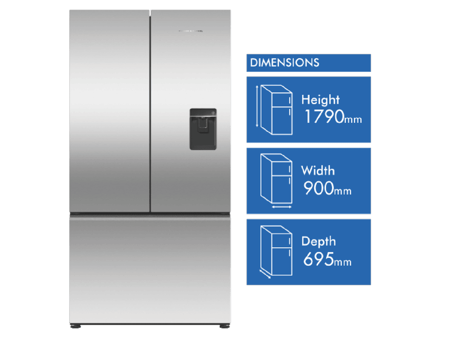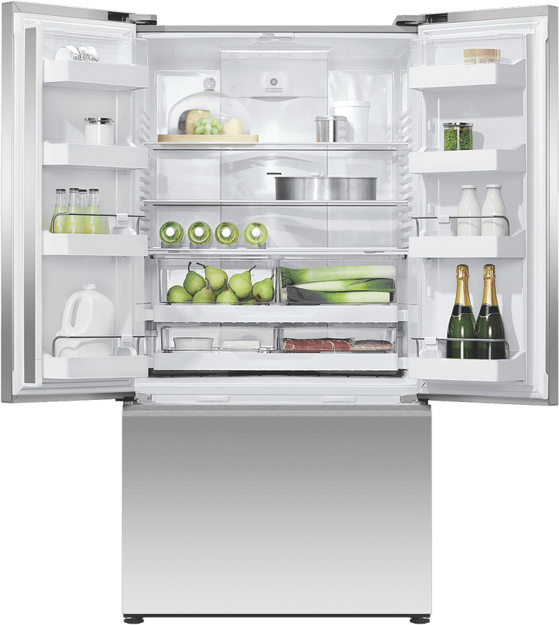 Bring stylish and spacious refrigeration to your kitchen with the Fisher & Paykel 569L French Door Fridge. This dual-door stainless steel refrigerator provides ample storage for all your fresh and frozen foods. The generous 614L total capacity includes a large 417L fridge compartment and 152L freezer. LED lighting illuminates the interior, making it easy to find ingredients. ActiveSmart technology adapts to your usage patterns for optimized cooling and energy efficiency. Additional features like the automatic ice maker and Fast Freeze function add convenience to your daily life. With a width of 900mm, height of 1790mm, and depth of 695mm, this fridge fits most standard kitchen spaces. The Fisher & Paykel Series 7 French door refrigerator runs quietly at 42 decibels and is rated for energy efficiency at 3.5 stars. It comes with Fisher & Paykel’s 2 year manufacturer’s warranty for peace of mind. The manufacturer’s part number for this fridge is RF610ANUX5. Learn more about how this quality refrigerator can upgrade your kitchen.