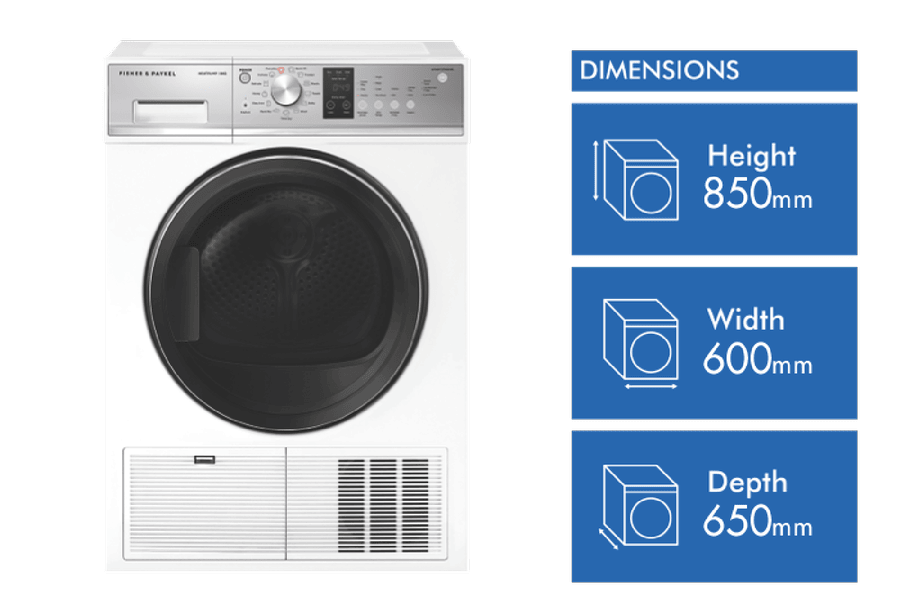 - Heat pump dryer with 8kg capacity