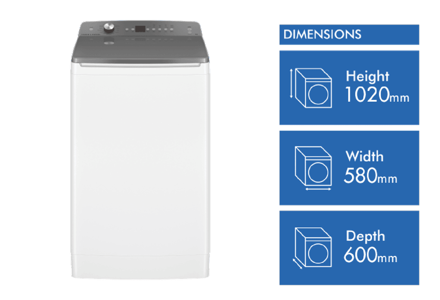 Only available at The Good Guys. With a 9kg capacity and efficient 4.5 star energy rating, the Fisher & Paykel Series 5 WL9058G1 top loader washing machine makes light work of the weekly wash. The large 9kg wash capacity caters to medium-sized households, fitting a typical load of towels or sheets with ease, while the Eco wash setting helps conserve water and energy. The intuitive SmartTouch control panel allows you to precisely adjust wash settings like temperature and spin speed up to 750rpm for each load. Specialised cycles like Delicate, Wool, and Hygiene ensure your clothes receive the right level of care. Features like the Soft Close lid, Advanced Out of Balance detection and Pillow Drum design provide added convenience and care for fabrics. With 14 flexible wash programs and options like Delay Start, Extra Rinse and Soak, you can customise every wash to suit your needs. In classic Fisher & Paykel style, the WL9058G1 sports a stylish white finish that will complement any laundry. Covered by a 2 year manufacturer’s warranty for peace of mind, the Fisher & Paykel WL9058G1 makes washing simple for busy households. The manufacturer’s part number for this product is WL9058G1. For a top loader that combines efficiency with flexibility, look no further than the Fisher & Paykel Series 5 – 9kg washing machine.