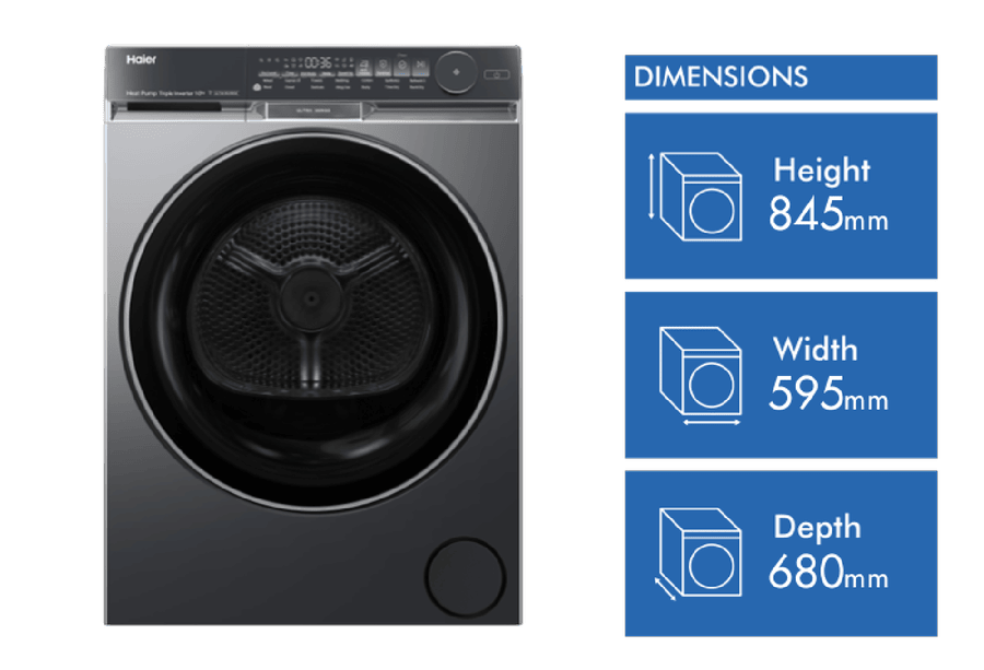 - Heat pump dryer with 10kg capacity