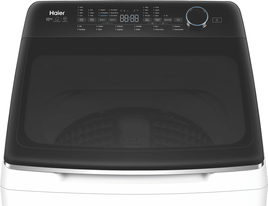 Give your laundry routine an efficient upgrade with the Haier 10kg Top Load Washer. Engineered for convenience, this top loader features a generous 10kg capacity, perfect for handling large loads with ease. The white finish lends a clean, classic look suitable for any laundry space. With a quick 680rpm max spin speed, this Haier washer removes more moisture so clothes dry faster. An Eco program setting helps conserve precious resources. Certified with a 4 star WELS water rating and 4.5 star energy rating, this washer is your eco-friendly laundry ally. 12 versatile wash programs handle everything from bulky items and bedding to delicates or wool with care. Adjustable rinse options give you custom control over the wash process. Load sensing, auto water levels and delay start provide added convenience. The tempered glass lid and stainless steel drum offer durability. A child lock ensures safe operation. Equipped with Haier’s UV Protect to help keep whites bright, this washer also features auto balance correction and auto dosing functions. With soft close lid, progress indicator and time to go display, laundry day is made simpler. Bring home convenience and efficiency with the Haier 10kg Top Load Washer. The manufacturer’s part number for this product is HWT10AD1.