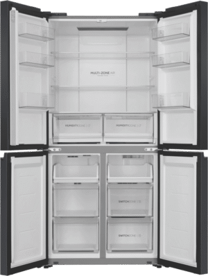 SwitchZone technology and humidity-controlled bins help to create the ideal environment for various foods, with a modern flat door design. Multi-Zone Air cooling system for consistent airflow to every corner of the fridge. Advanced Anti-Bacterial Treatment (ABT) technology reduces bacteria. Dual humidity-controlled vegetable bins.