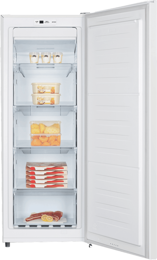 Give your kitchen a sleek, modern refresh with the Hisense 155L Vertical Freezer. This spacious upright freezer features a brilliant white finish that will complement any décor. With 155 liters of storage capacity, you’ll have plenty of room to stock up on frozen foods to feed the whole family. The reversible door and adjustable legs make installation easy, while the electronic temperature control lets you customize cooling as needed. Key features like Frost Free technology prevent icy buildup inside, and the Super Freeze function rapidly cools items to lock in freshness. The energy efficient 3 star rating helps keep running costs down. With sleek looks and handy storage features, this Hisense freezer will be a valued addition to your home. The manufacturer’s part number for this product is HRVF155. Discover how convenient and stylish frozen food storage can be with the Hisense 155L Vertical Freezer today.