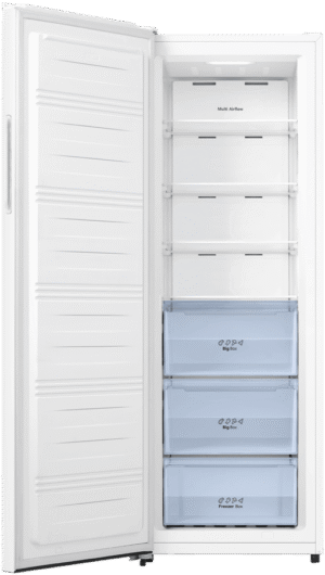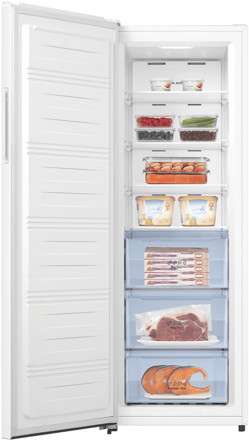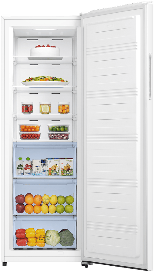 Keep your frozen food perfectly preserved with the Hisense 240L Vertical Hybrid Freezer. This spacious upright freezer features a generous 240 litre capacity and a reversible door, making it easy to open from either side based on your kitchen layout. The sleek white finish allows it to blend seamlessly into any décor. With its Total No Frost technology, you’ll never have to manually defrost it again. The Super Freeze function rapidly freezes fresh groceries to lock in nutrients, while the Super Cool mode helps chill beverages faster. The electronic touch controls offer precise temperature adjustments. Thanks to its energy efficient 3 star rating, you’ll enjoy optimized electricity usage. The manufacturer’s part number for this product is HRVF240. Bring convenient frozen storage into your home with this freezer.