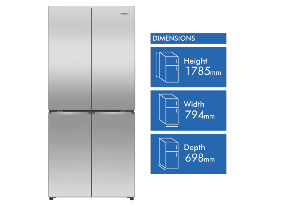 Tired of your fridge taking up too much space? Meet the Hisense 483L French Door Refrigerator (HRCD483TS). This sleek, stainless steel beauty fits seamlessly into your kitchen with its 794mm width, 1785mm height, and 698mm depth. You’ll love the spacious 304L fridge capacity, 87L freezer, and handy 92L multi-use zone. The dual-tech cooling and internal electronic touch controls make it a breeze to keep your food fresh. Plus, with the My Fresh Choice adjustable zone and Connect Life feature, you can customize your fridge to suit your needs. Backed by a 3-year manufacturer’s warranty, the Hisense PureFlat Collection delivers style and convenience in one cool package.