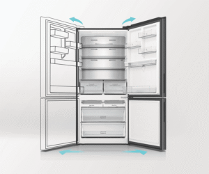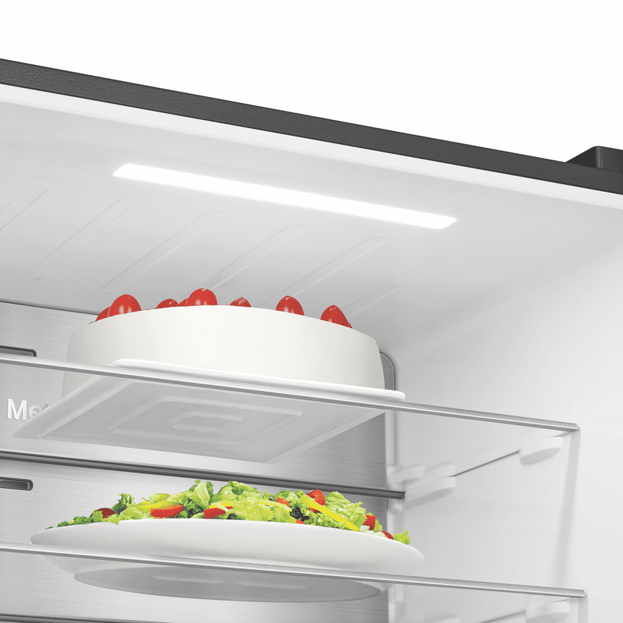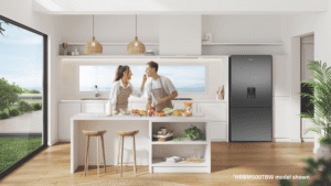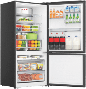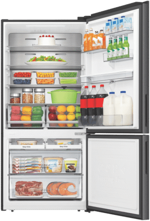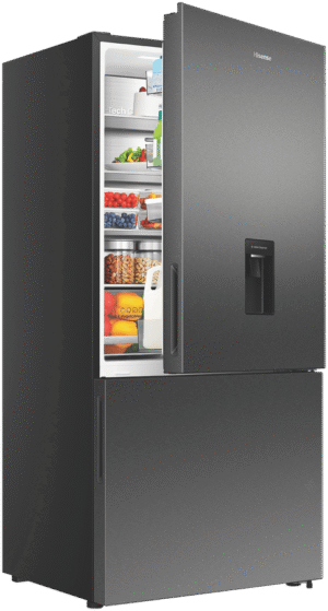 This Hisense 500L Bottom Mount Fridge keeps food fresh and organized with ease. It’s got a roomy 351L fridge and 149L freezer, perfect for big families or food lovers. The pure flat design looks sleek in any kitchen, and the dark stainless steel finish adds a touch of class. You’ll love the handy water dispenser for quick drinks, and the reversible door lets you set it up how you like. Inside, metal cooling and inverter tech work together to keep temps steady and energy bills low. The touch control panel makes adjusting settings a breeze, while the freezer’s double metal glide drawers slide out smoothly. Plus, it’s frost-free, so no more messy defrosting. This fridge fits nicely in most kitchens and comes with a solid 3-year warranty. The model number is HRBM500TBW.