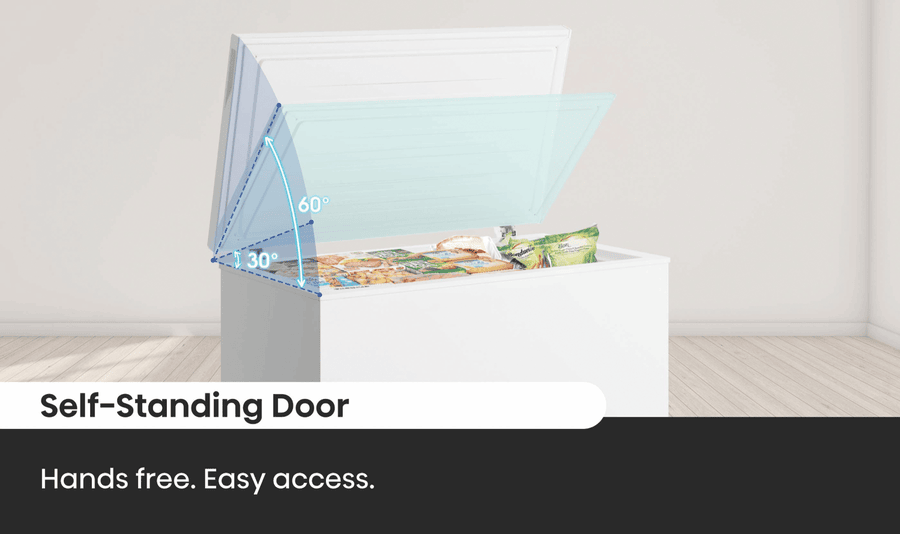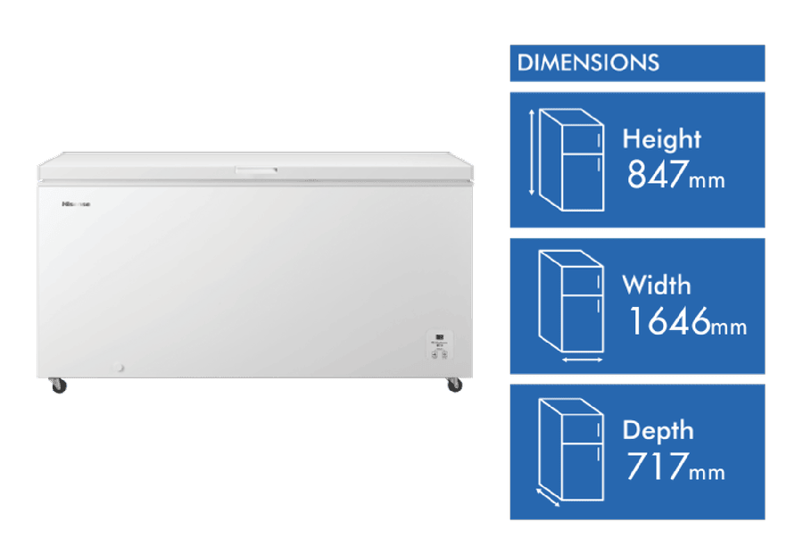 This Hisense Hybrid Chest Freezer gives you 500L of flexible storage space. Switch between freezer and fridge modes to suit your needs. The boundless door design makes cleaning a breeze, while ultrathin hinges save space. You’ll love the hands-free self-standing door and smooth sliding basket for easy access. With caster wheels, you can move it around effortlessly. The adjustable thermostat and electronic temperature control help keep your food at just the right temperature. Plus, the convenient water drain makes maintenance simple. This versatile appliance measures 1646mm wide, 847mm high, and 717mm deep. Hisense backs it with a 3-year warranty. For flexible food storage that adapts to your needs, check out the Hisense HRCF501.