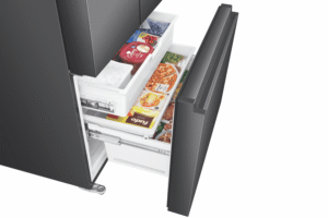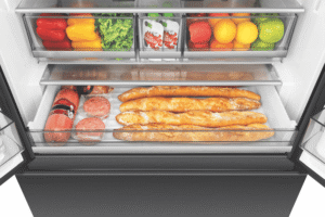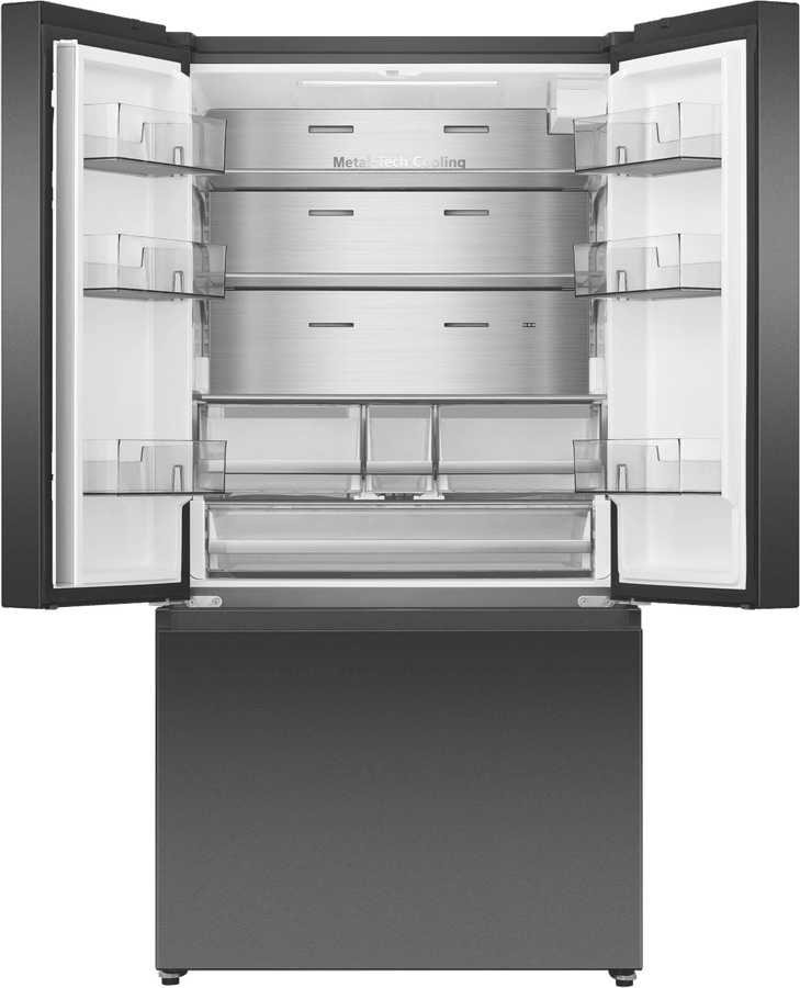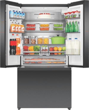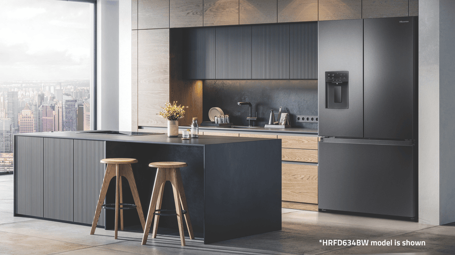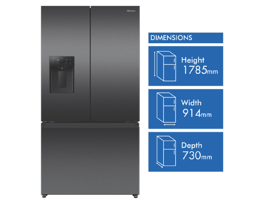 Step up your kitchen with the sleek, spacious Hisense 634L French Door Refrigerator. This stylish fridge comes in a sophisticated black finish that will complement any modern decor. The generous 634 litre total capacity includes a cavernous 438 litre fridge and 196 litre freezer, providing ample storage for the weekly shop. The flexible French door design gives you easy access to all your fresh food, while the XXL door balcony and full width pantry help you fit in large trays, platters and tall bottles with ease. Stay organized with the cantilever shelves, while features like the automatic ice maker and chilled water dispenser add convenience to your day. Save power with the energy efficient 3 star rating. The super cool and super freeze functions help lock in freshness and freeze foods faster when you need to. With its counter-depth design, this fridge makes a stylish built-in look simple. Bring home the convenience and quality of the Hisense 634L French Door Fridge today. The manufacturer’s part number for this product is HRFD634BW.