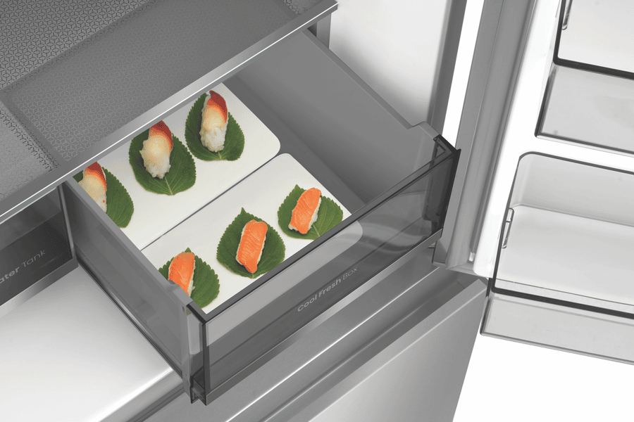 • Dual doors, My Fresh Choice, sliding shelf, metal glide drawer