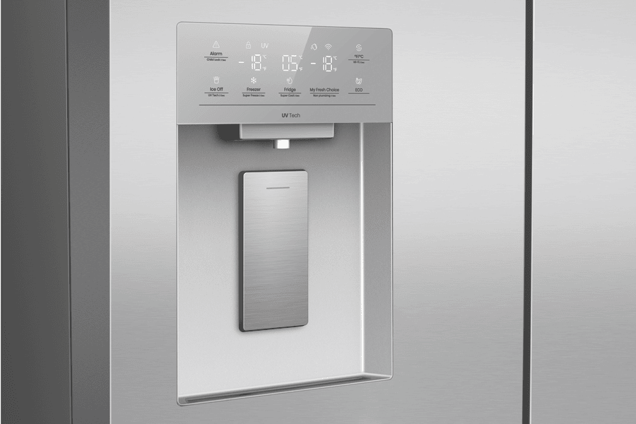 Want a fridge that’s big on space and smart features? This Hisense 640L French Door Fridge keeps food fresh and makes life easier. With a roomy 390L fridge and 121L freezer, plus a 129L multi-use zone, you’ve got plenty of room for all your groceries. The cool fresh box and metal glide drawer help organize everything just right. No need for plumbing – the ice and water dispenser has a 5L tank built in. The UV sterilization keeps things clean, while the inverter tech saves on power bills. The My Fresh Choice feature lets you adjust temps in different areas. With a 4.5 star energy rating, it’s efficient too. The stainless steel finish looks great in any kitchen. Backed by a 3 year warranty, this HRCD640TSW model is a reliable choice for busy families.
