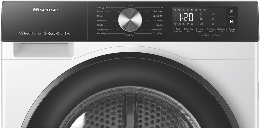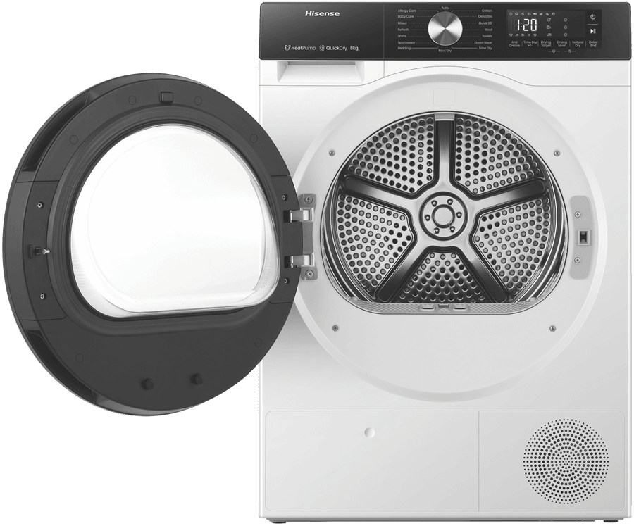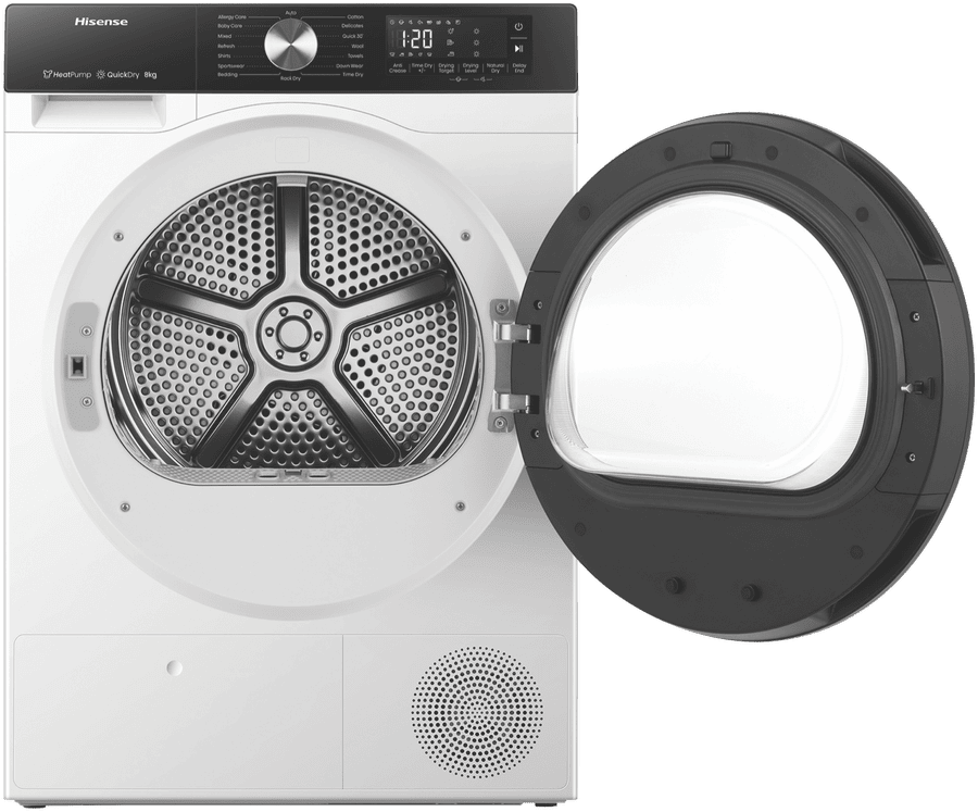 Boasting an 8 Star Energy Rating, the Hisense Series 3 Dryer is loaded with impressive features. With Heat Pump technology, Auto Dry, Allergy Care, and a Quick 30’ option, this dryer turns laundry from a chore into a breeze.