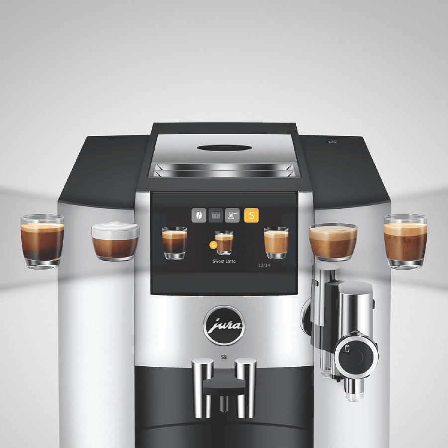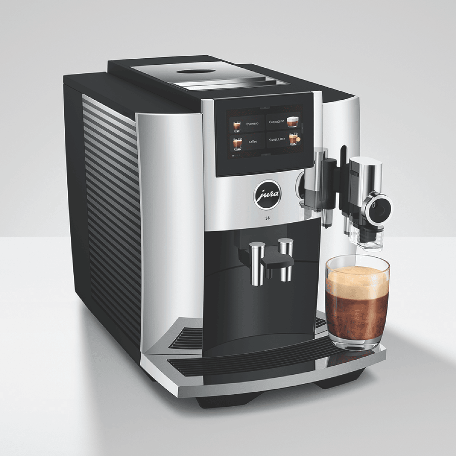 Bring barista-quality coffee to your kitchen with the JURA S8 Chrome Inter Automatic Coffee Machine. This sleek, chrome-finished machine packs a punch with its 15 bar pump pressure and 1.9L water tank capacity. Want to craft your perfect cup? The built-in grinder, milk frother, and Pulse Extraction Process let you customize to your heart’s content. Plus, with features like intelligent preheating, 3D brewing technology, and the JURA Cockpit display, you’ll have a user-friendly brewing experience every time. The one-touch function and touchscreen make operation a breeze, while the auto shut-off gives you peace of mind. Experience coffee shop quality at home with the JURA S8 15651.
