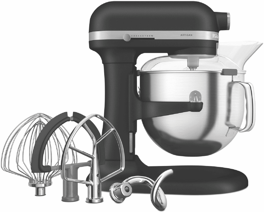 Master the kitchen with the powerful yet stylish KitchenAid Artisan Bowl Lift Mixer in classic Cast Iron Black. This versatile stand mixer makes baking a breeze with its robust 375-watt motor and 11 speeds, easily handling everything from gentle folding to heavy kneading. The generous 6.6L stainless steel bowl provides plenty of room for large batches while the innovative bowl-lift design gives you easy access for adding ingredients. Whip up cakes, blend batters, knead doughs, shred vegetables and more using the included accessories like the wire whisk, beater, dough hook and pouring shield. With a sleek die-cast zinc body, soft start feature and dishwasher-safe bowl, this mixer combines performance with thoughtful design. Enjoy reliable mixing and kneading for years to come with KitchenAid’s 5-year warranty. The manufacturer’s part number for this product is 5KSM70SHXABK. Bring gourmet results to your kitchen with the KitchenAid Artisan Bowl Lift Mixer.