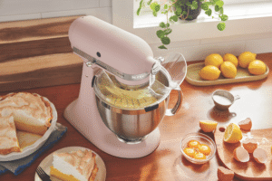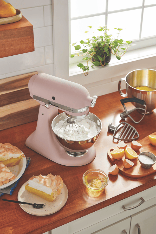 The KSM195 KitchenAid Artisan Series Tilt-Head Stand Mixer with Premium Accessory Pack has the capacity and tools for every occasion. This model includes both a 2.8L and 4.7L bowl, so you can do more – mix up batter in one and then whip up a silky frosting in the other. In addition, the exclusive accessory pack includes a flex edge beater, pastry beater, dough hook, wire whip and redesigned secure fit pouring shield. This durable tilt-head stand mixer was built to take it all on, and features 10 speeds to gently knead, thoroughly mix and whip ingredients for a wide variety of recipes