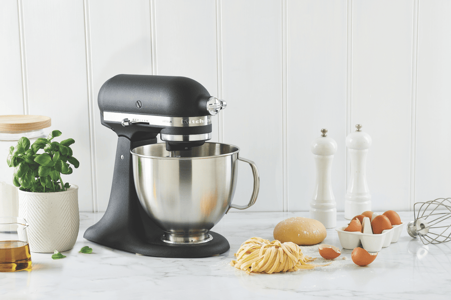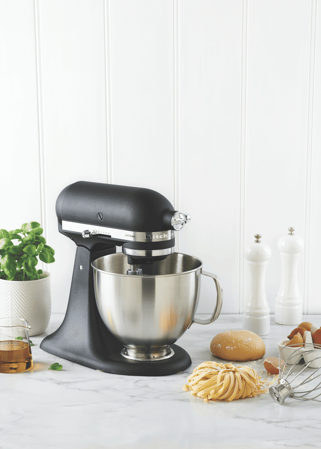 The KSM195 KitchenAid Artisan Series Tilt-Head Stand Mixer with Premium Accessory Pack has the capacity and tools for every occasion. This model includes both a 2.8L and 4.7L bowl, so you can do more – mix up batter in one and then whip up a silky frosting in the other. In addition, the exclusive accessory pack includes a flex edge beater, pastry beater, dough hook, wire whip and redesigned secure fit pouring shield. This durable tilt-head stand mixer was built to take it all on, and features 10 speeds to gently knead, thoroughly mix and whip ingredients for a wide variety of recipes