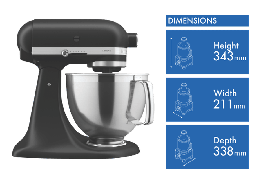 - Full metal mixer with 4.7 Litre and 2.8 Litre bowls