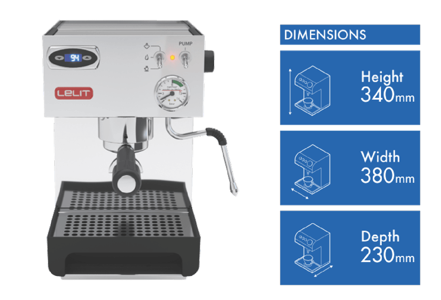 The perfect coffee machine for home baristas, the Lelit Anna Manual Espresso Maker crafts café-quality espresso with its 15 bar vibratory pump and True 9 Bar overpressure valve. Brewing espresso is an art, and the Anna gives you control over variables like temperature and pressure to pull consistently great shots. The dual brew and steam PID allows setting different extraction temperatures, while the brew pressure dial helps optimize your grind. With a fast heat up time and stainless steel body, this manual espresso machine looks great on your kitchen counter. The adjustable dual-purpose steam wand froths milk for cappuccinos and lattes. It includes a 2-way filter holder, single and double shot filters, tamper, and measuring spoon. Weighing 7.8kg, this espresso machine measures 380mm W x 230mm D x 340mm H. Backed by a 2 year warranty and made in Italy, the Lelit Anna brings café quality espresso to your home. Order the Manufacturer Part Number PESAN08PSS2IXX1 model today.