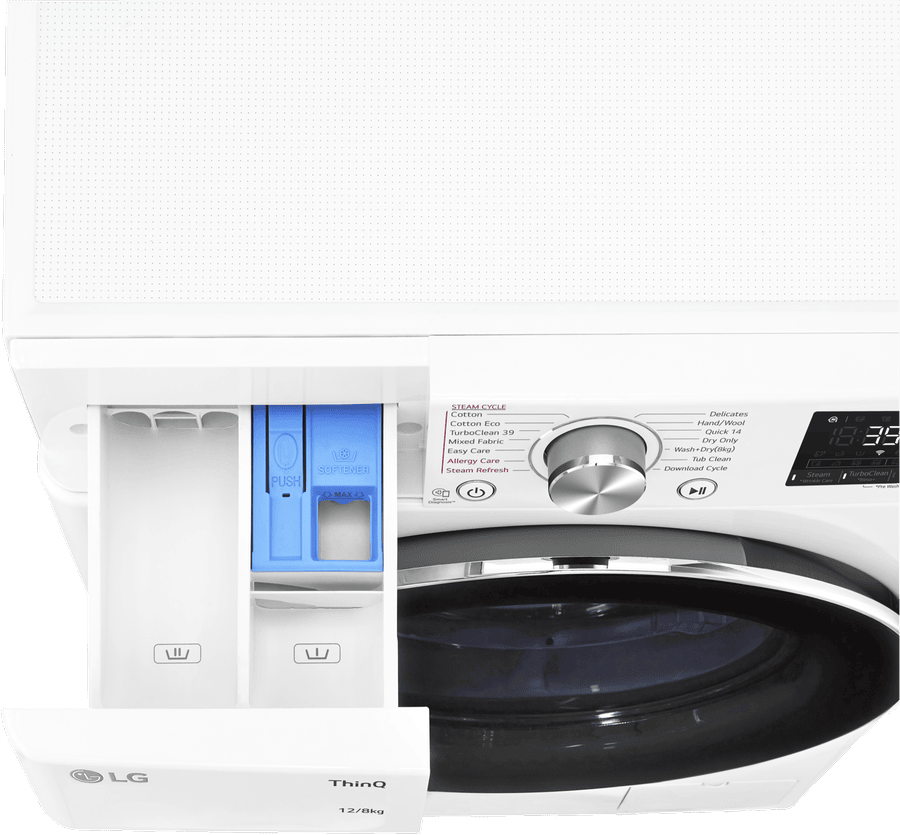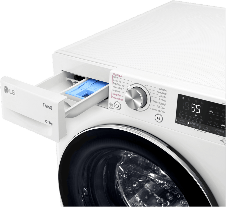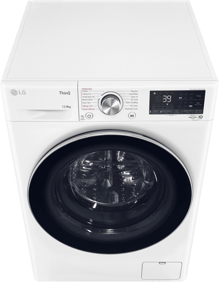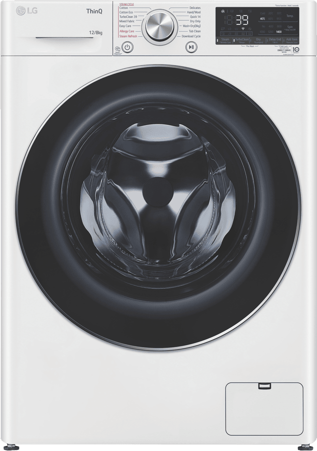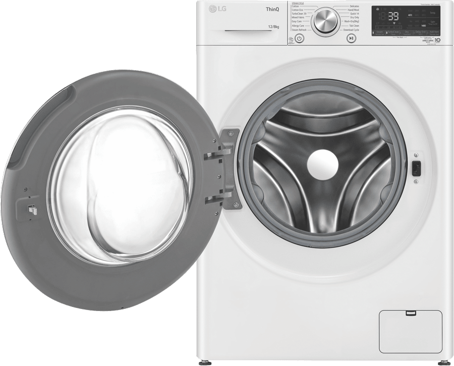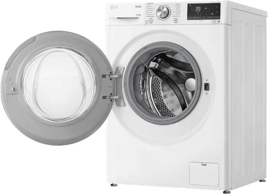 Discover the ultimate in laundry care with the LG 12kg Combo Washer Dryer. This large capacity front loader offers superior fabric care for all your washing needs. With a generous 12kg washing capacity, 1400rpm max spin speed, and 8kg drying capacity, it handles even the largest loads with ease. The 4.5 star energy and water ratings make it an eco-friendly choice that’s kind on your utility bills and the environment. The LG Series 9 washer dryer features AI DD Intelligent Fabric Care technology to customize wash cycles for optimal results. The Allergy Care cycle with steam eliminates up to 99.9% of dust mites and select allergens. Smart ThinQ capabilities let you control and monitor cycles remotely. With 16 specialized wash programs like Cotton, Mixed Fabric, Delicates, Hand Wool and TurboClean 39, clothes get the tailored care they need. Variable temperature and spin speed settings allow further customization. In sleek white with a large 600mm width, this combo unit delivers powerful cleaning performance while complementing modern laundry rooms. The intuitive control panel makes operation a breeze. With durable construction and a 2 year manufacturer’s warranty, the LG 12kg Combo Washer Dryer provides long-lasting quality and convenience. The manufacturer’s part number for this product is WVC9-1412W. Discover the possibilities with this feature-packed washer dryer today.