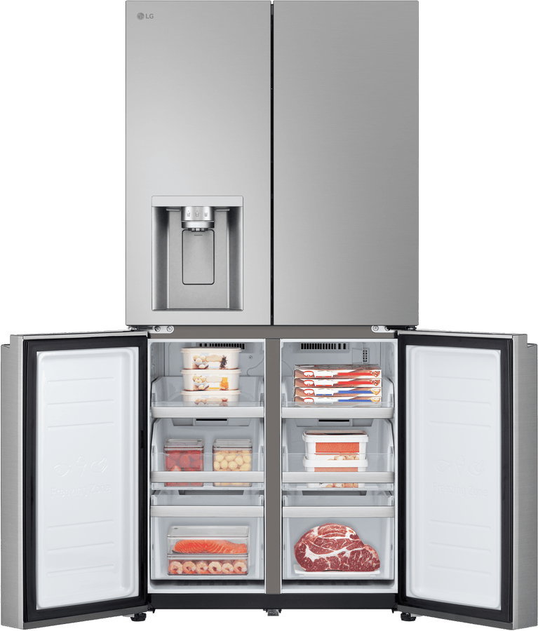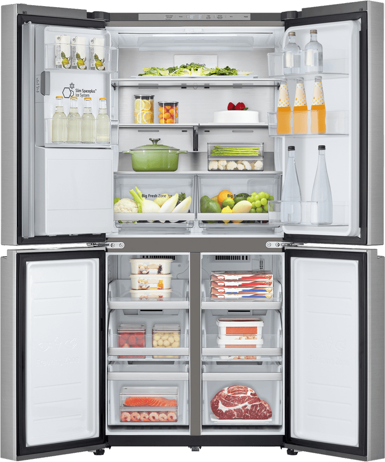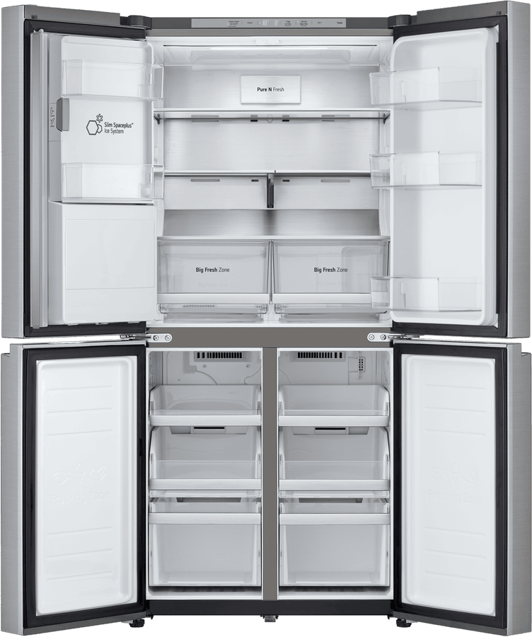 - Dual French doors, made to fit 850mm cavity, Slim Spaceplus Ice System, LG ThinQ