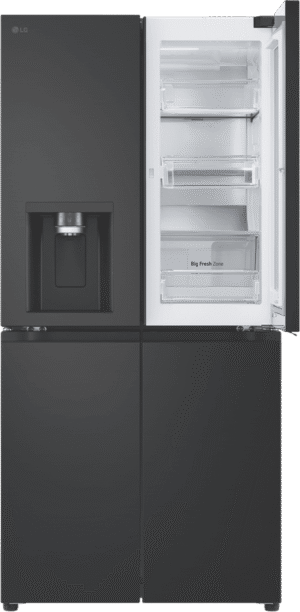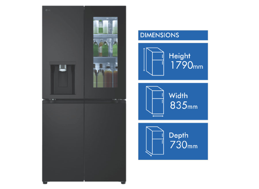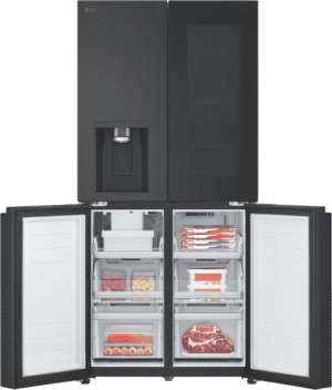 Get ready to upgrade your kitchen with the sleek, stylish LG 508L InstaView French Door Refrigerator in elegant black. With generous 508 litre total capacity and impressive 288 litre fridge capacity, this family-sized refrigerator provides ample fresh food storage to satisfy even large households. The dedicated 209 litre freezer section ensures you’ll always have space on hand for frozen foods. Innovative InstaView door-in-door technology gives you easy access to frequently used items without letting cold air escape. The integrated LCD panel lets you see inside the fridge without opening the door. Craft ice spherical ice cubes from the built-in ice maker add a touch of sophistication to everyday drinks. The Pure N Fresh filtration system eliminates bacteria and reduces odours for fresher air and water. Surround Cooling uses vents to evenly maintain optimal temperatures throughout the cavity. The UVnano water dispenser provides purified water on demand. With a contemporary matte black finish and sleek stainless steel accents, this fridge adds modern style to your kitchen. Backed by LG’s 2 year warranty for peace of mind.