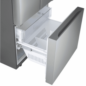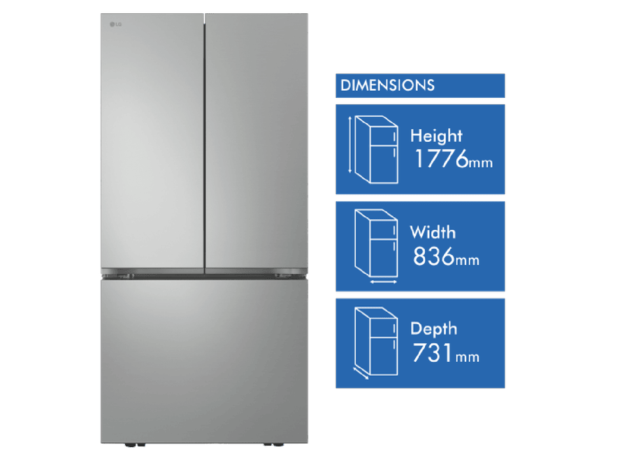 This 589L French door refrigerator gives you plenty of space for all your fresh and frozen food, with a generous 402L fridge section and 187L freezer capacity. The Multi Air Flow Cooling system keeps everything at just the right temperature, while the 3D Freezer Drawer and Express Freeze function make organizing and quickly freezing items a breeze. With smart features like ThinQ WiFi compatibility and Smart Diagnosis, you can monitor and troubleshoot your fridge from your phone. The internal LED control panel makes adjusting settings simple, and the door alarm helps prevent food waste. Six door baskets and two Fresh Zones give you flexible storage options for all your groceries. This silver stainless steel fridge comes with a 3.5 star energy rating and dual door hinges for convenient access. Backed by a 2 year warranty, the LG GF-B589PLE is a practical addition to any modern kitchen.