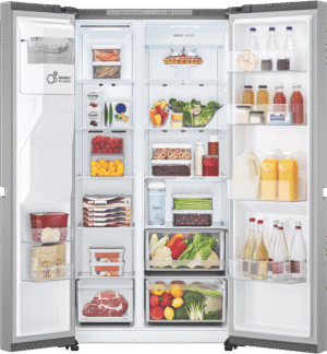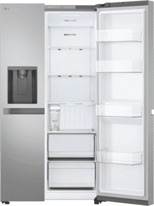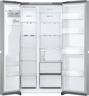 How about upgrading your kitchen with the LG 641L side-by-side fridge? This sleek, stainless steel model packs a total capacity of 641L, giving you 420L in the fridge and 221L in the freezer—including a handy 14L ice maker. You’ll love the convenience of the dual ice and water dispenser, which doesn’t even need plumbing. Get cube or crushed ice at the touch of a button, while smart features like the inverter compressor, multi-air flow, express freeze, and door alarm make your life easier. The GS-N599PL also boasts a 4-star energy rating and comes with LG’s 2-year warranty for extra peace of mind.