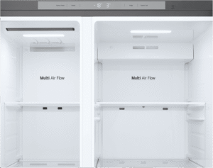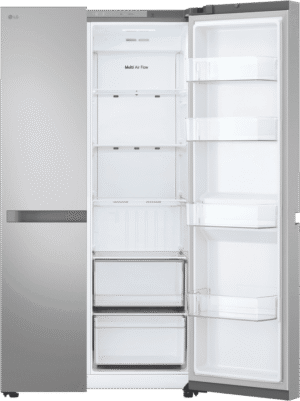 Imagine having all the space you need in one sleek and stylish package. The LG 664L Side By Side Refrigerator (GS-B599PL) offers a generous 664L total capacity, with 423L dedicated to fresh food and 241L for frozen goods. You’ll love the convenience of the dual door hinge design and the energy efficiency of the 5-star rating. Plus, with smart features like the inverter compressor, Multi Air Flow, and Express Freeze, your food will stay fresher for longer. The flat door design in stunning stainless steel will be the star of your kitchen. Model GS-B599PL comes with a 2-year manufacturer’s warranty for added peace of mind