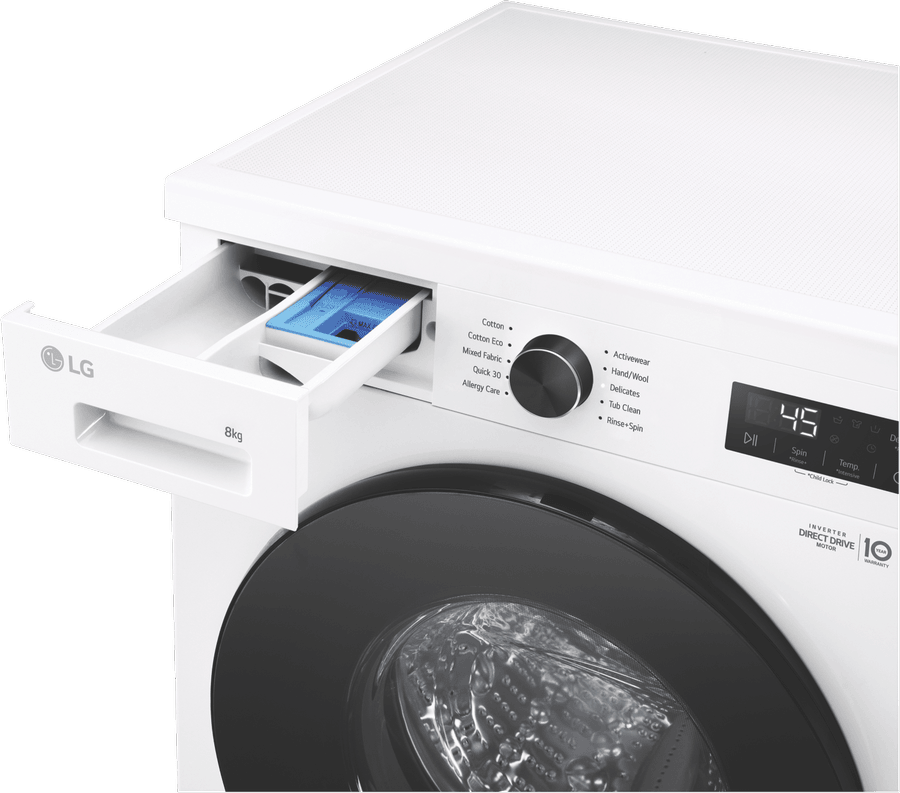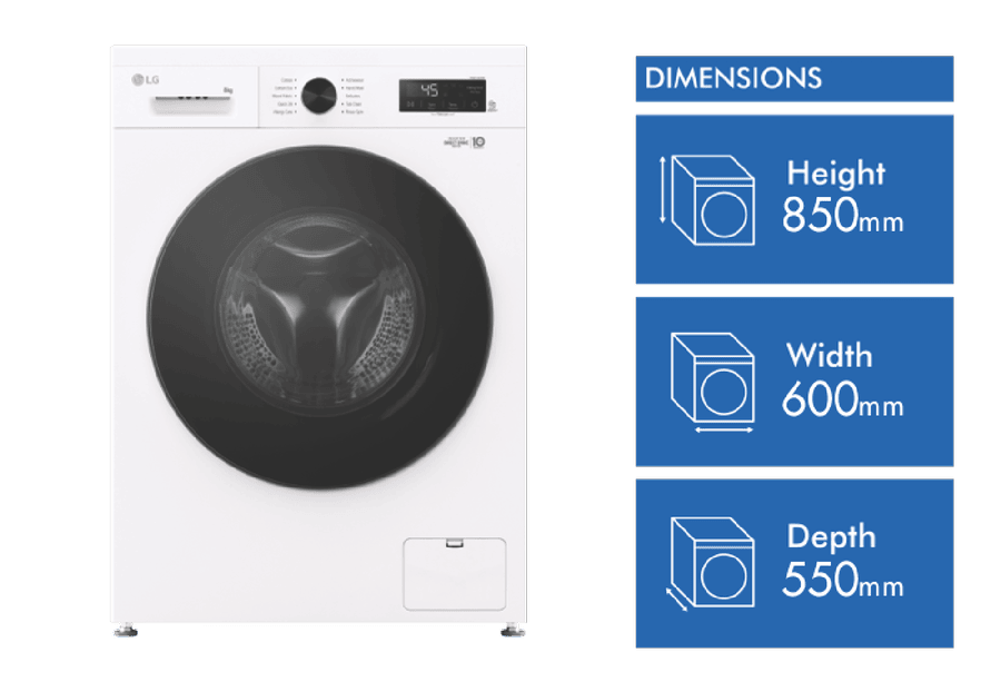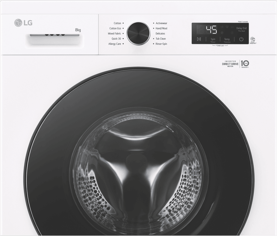 Looking for a reliable front load washer that can handle your everyday laundry needs? Check out the LG 8kg Front Load Washer (WV1-1208W). With its spacious 8kg capacity, this washer is perfect for families or those with larger loads. The sleek white design will fit seamlessly into your laundry space. Enjoy 8 different washing programs, including Cotton, Allergy Care, Delicates, and Quick 30, to cater to all your fabrics. Plus, handy options like Delay Timer and Pre-Wash give you more control. LG’s innovative 6 Motion Direct Drive and Inverter Direct Drive Motor ensure quiet yet powerful performance. The WV1-1208W comes with a 2 year manufacturer’s warranty for added peace of mind.