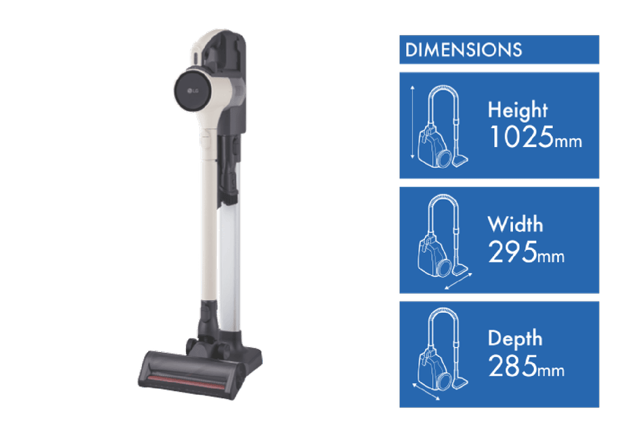 Keep your home spotless with this LG CordZero stick vacuum that tackles hard floors, tiles and carpets with ease. Its 5-step filtration system makes it perfect for pet owners, while the Smart Inverter Motor and Kompressor Technology let you fit more dust in the 0.4L bin and empty less often. Enjoy up to 120 minutes of runtime with the two included batteries that each last 60 minutes. The vacuum is wall mountable with its standing charger for convenient storage. Backed by a 2-year warranty, with 12 months on the battery and 8 years on the Smart Inverter Motor. Model A9L-MULTI.