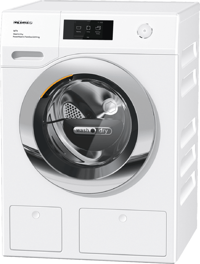 Washer-dryer combining 2 appliances into one creating the ultimate convenience all from one appliance. Includes TwinDos and QuickPower – at the touch of a button. Automatic detergent dispensing at the touch of a button with TwinDos. Washing and drying in the shortest of times using QuickPower. Your favourite items are ready in < 1 hour – Single Wash&Dry. M Touch – the appliance is controlled by tapping or swiping. Miele@home – clever networking opens up new possibilities. MobileControl ensure complete flexibility using the Miele App.