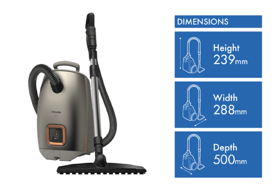Disclaimers: (1)In accordance with IEC 62885-2:2021 (2)During the development phase of the advertised Guard vacuum cleaner series, Miele tested models and core components at various power levels for 750 hours of use (= 37.5 hours p.a.). More: miele.com/20years